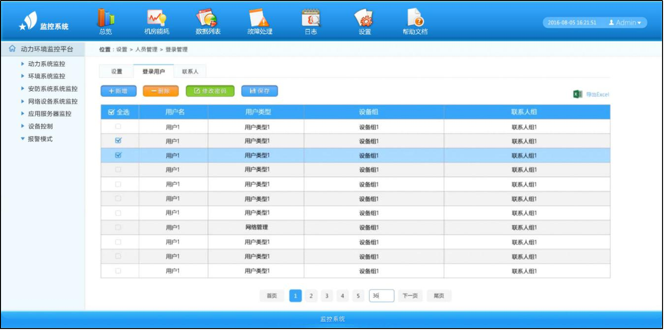 管理員可添加不同權限的用戶,權限包含創建及刪除用戶、系統信息、設置、所有設備信息、所有監控項信息、設備檢查命令、監控項檢查命令,達到管理的目的。